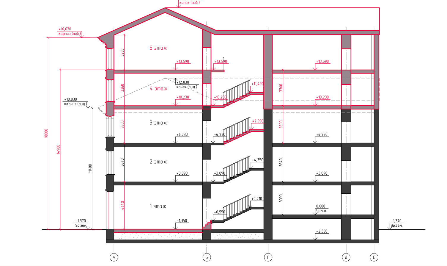 В настоящий момент на участке расположено нежилое трехэтажное здание 1962 года постройки с двумся лестничными клетками: парадной, вход в которую осуществляется из арочного пространства для проезда, и черной со входом из внутреннего двора. Здание имеет скатную кровлю с холодным чердачным пространством.